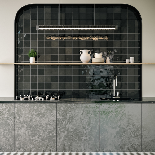 Village Cuadrado Black Porcelain Decor Tile