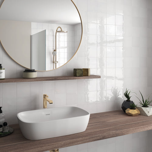 Village Cuadrado White Porcelain Decor Tile